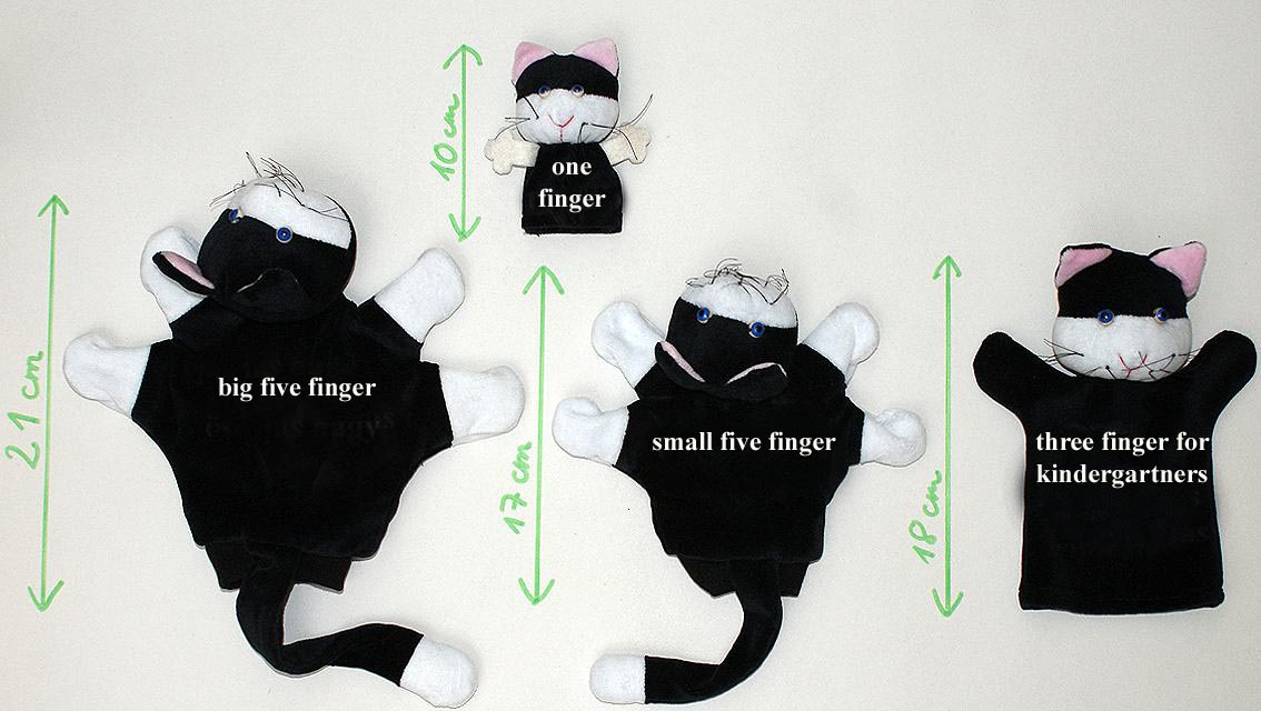 in big size only. The three finger puppets (for kindergarten age) are made in one size, which